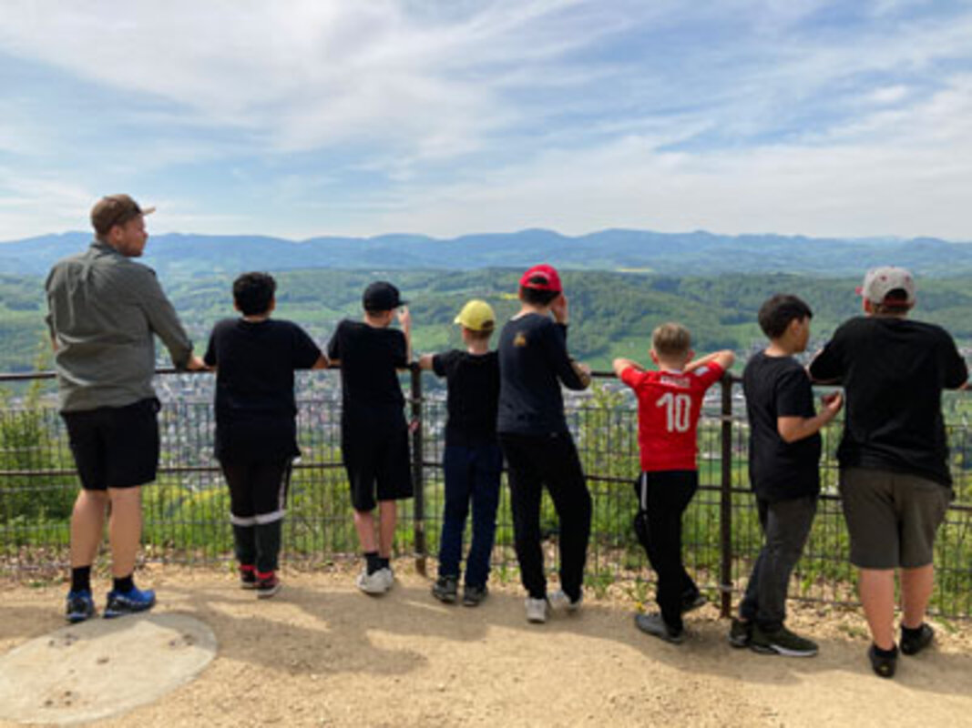 Auf dem Pausenplatz des Bützenenschulhauses herrschte am Freitagmorgen den 29. April reger Betrieb. Die Schüler und Schülerinnen der 5. und 6. Klasse - ausgerüstet mit Rucksäcken, guten Schuhen und Sonnenhüten - versammelten sich um den Brunnen und hörten der kurzen Ansprache von Frau Giger zu. Kurz darauf setzte sich die grosse Gruppe in Bewegung und nahm die Wanderung über die Isletenhütte auf die Sissacher Fluh in Angriff.